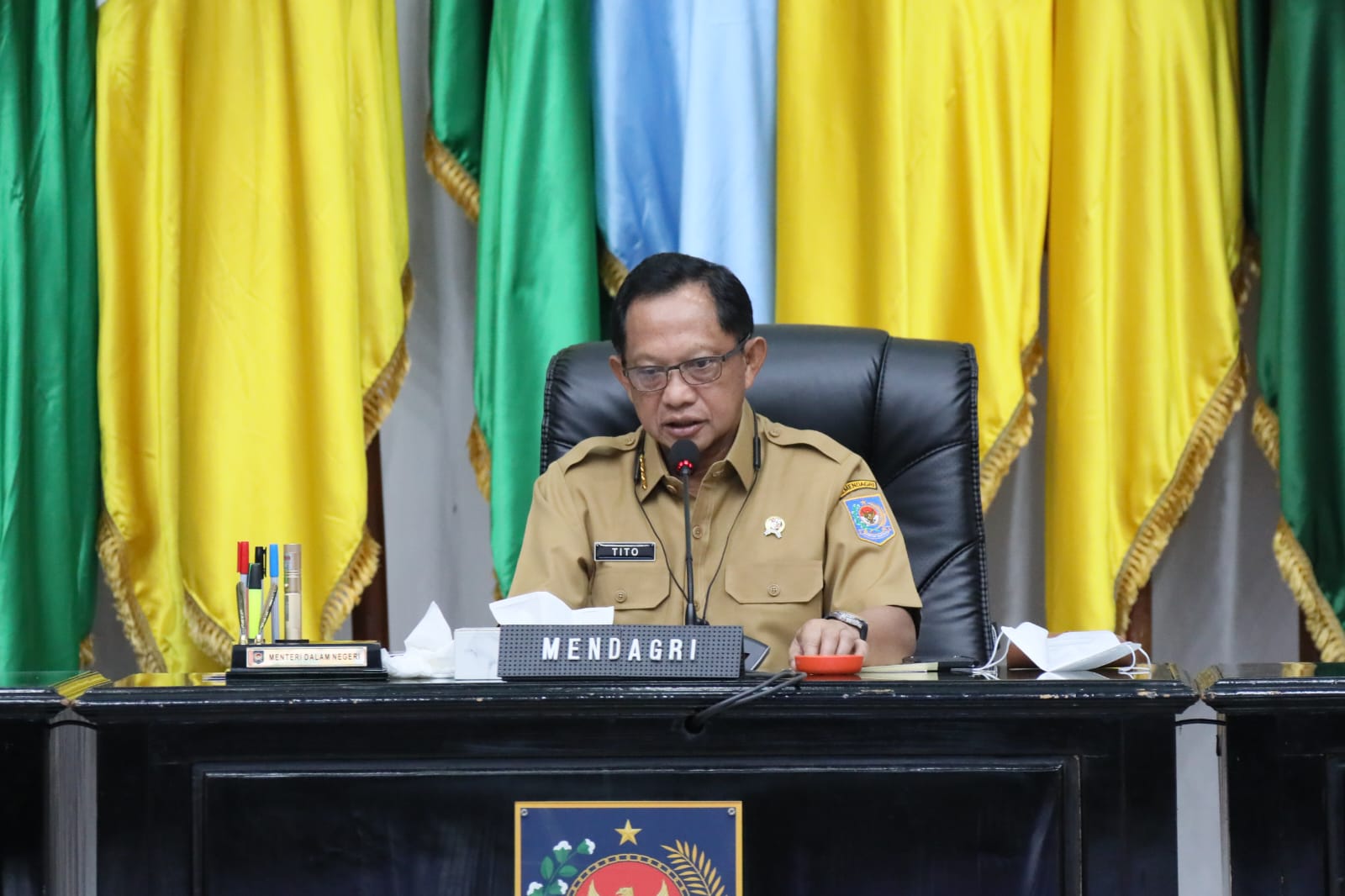 Selain itu, hadir pula Wakil Menteri Dalam Negeri (Wamendagri) Bima Arya Sugiarto, Sekretaris Jenderal (Sekjen) Kemendagri Tomsi Tohir, serta pejabat terkait di lingkungan Kemendagri.
