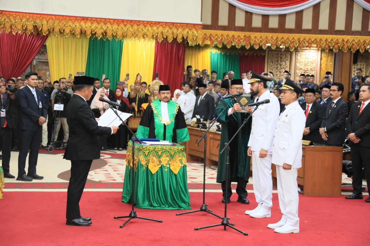 Pelantikan berlangsung dalam Rapat Paripurna Dewan Perwakilan Rakyat Aceh (DPRA) di Gedung Utama DPRA, Kota Banda Aceh, Rabu (12/2/2025).