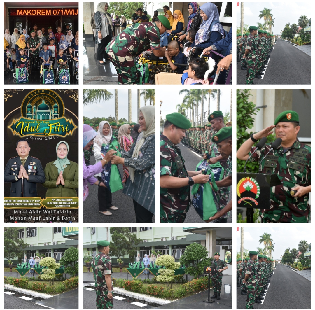 Kegiatan ini diawali dengan apel pemberangkatan cuti personil militer dan PNS Korem 071/Wijayakusuma, pembagian zakat dan bingkisan lebaran untuk seluruh anggota. Pada amanatnya Danrem menyampaikan bahwa sebagai insan yang beriman dan bertaqwa, hendaknya senantiasa senantiasa memanjatkan puji syukur kehadirat Tuhan Yang Maha Kuasa karena atas limpahan Rahmat dan Karunia-Nya, pada hari ini masih diberi kekuatan, kesehatan dan kesempatan sehingga dapat menghadiri acara penyerahan zakat fitrah, penyerahan bingkisan dan pemberangkatan cuti lebaran tahun 1446 h serta penyerahan bingkisan kepada penyandang disabilitas. Seperti kita ketahui bersama, beberapa hari lagi umat muslim akan menyambut hari raya idul fitri 1 Syawal
