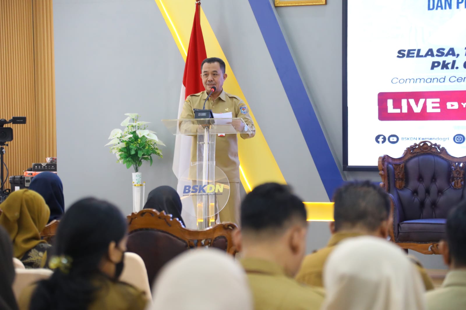 โSurvei Status Gizi Indonesia menunjukan angka stunting di Indonesia sebesar 21,5 persen pada tahun 2023. Salah satu penyebab utamanya adalah sanitasi buruk dan tingginya paparan patogen yang berdampak pada kesehatan anak. Untuk itu, butuh intervensi berbasis bukti yang lebih komprehensif,โ ujar Kepala BSKDN Kemendagri Yusharto Huntoyungo saat membuka Forum Diskusi Aktual (FDA) bertajuk โStrategi Implementasi WBE dalam Upaya Penurunan Stunting dan Perbaikan Gizi di Indonesiaโ di Ruang Command Center BSKDN, Jakarta, Selasa (11/3/2025).