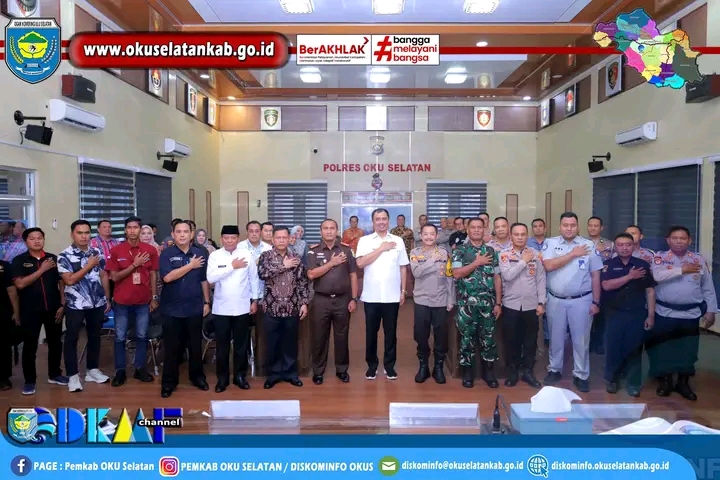 Rakor yang digelar di Aula Sertu Pol Hadinata Polres OKU Selatan ini membahas terkait Pengamanan Hari Raya Idul Fitri 1446 ฮ di Kabupaten OKU Selatan.