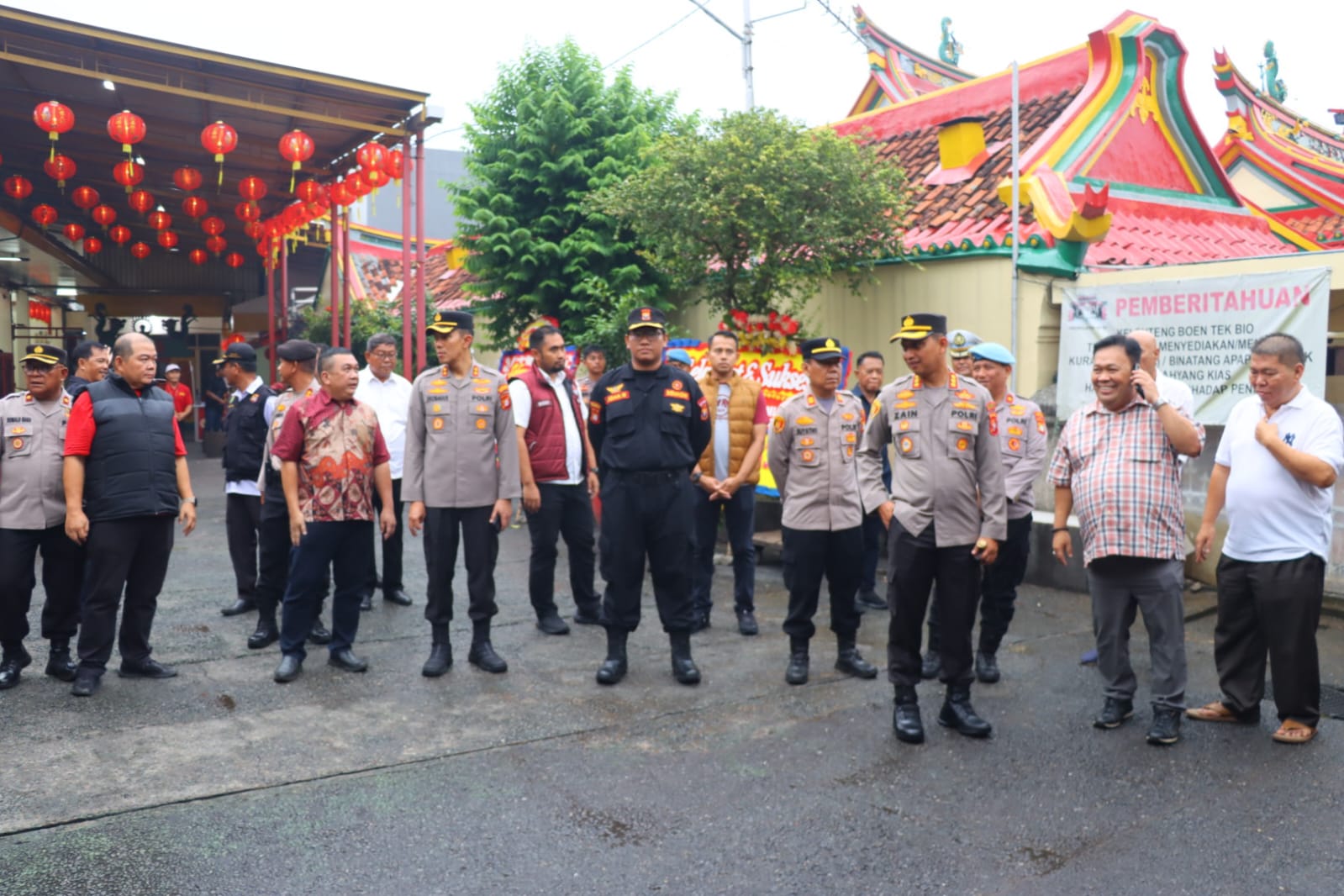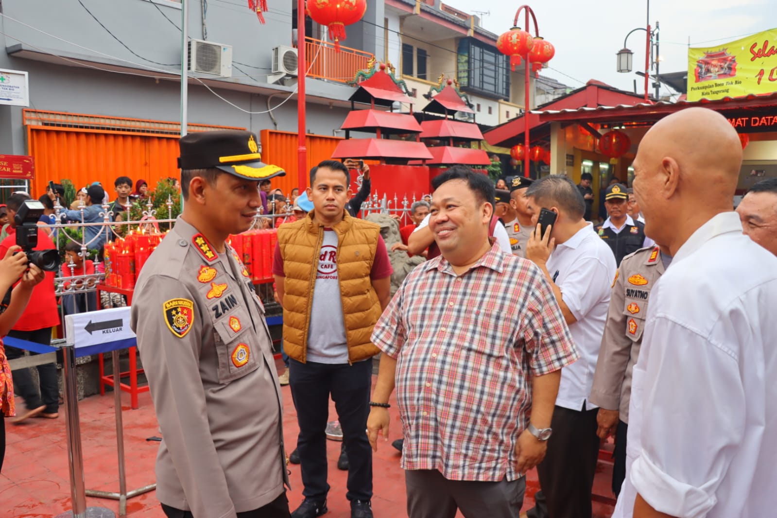 TANGERANG, DN-II Kapolres Metro Tangerang Kota, Kombes Pol Zain Dwi Nugroho didampingi Wakapolres, AKBP Eko Bagus Riyadi dan sejumlah Pejabat Utama (PJU) melaksanakan monitoring di 3 (tiga) Vihara berlokasi di Kecamatan Tangerang, kecamatan Karawaci dan Kecamatan Neglasari. Selasa (28/1/2025) petang. “Tiga Vihara itu yakni Vihara Boen Tek Bio, Vihara Nimmala Boen San Bio dan Vihara Yan Sen Bio.”