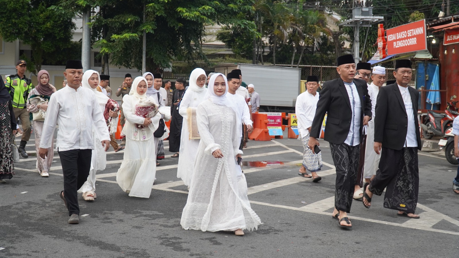 Untuk pertama kali pasangan Wali Kota dan Wakil Wali Kota mengikuti Sholat Ied pasca dilantik 20 Februari 2025.