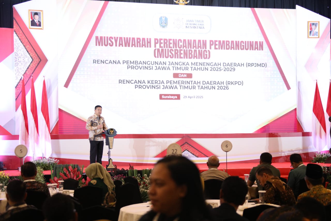 Hal itu disampaikan Tomsi dalam acara Musyawarah Perencanaan Pembangunan (Musrenbang) Rencana Pembangunan Jangka Menengah Daerah (RPJMD) Provinsi Jawa Timur (Jatim) Tahun 2025-2029 dan Rencana Kerja Pemerintah Daerah (RKPD) Provinsi Jatim Tahun 2026 di Shangri-La Hotel, Surabaya, Jatim, Selasa (29/4/2025).