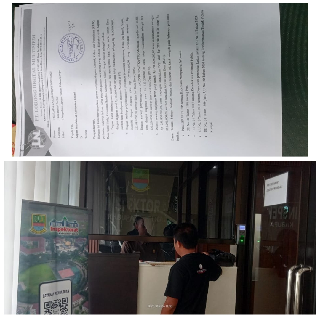 Kabupaten Bekasi, DN-II Duga’an kegiatan Fiktif tahun 2024 Kepala Desa Pantai Hurip Kecamatan Babelan berbuntut panjang hingga berujung di laporkan ke inspektorat Kabupaten Bekasi, Senin (24/03/2025)