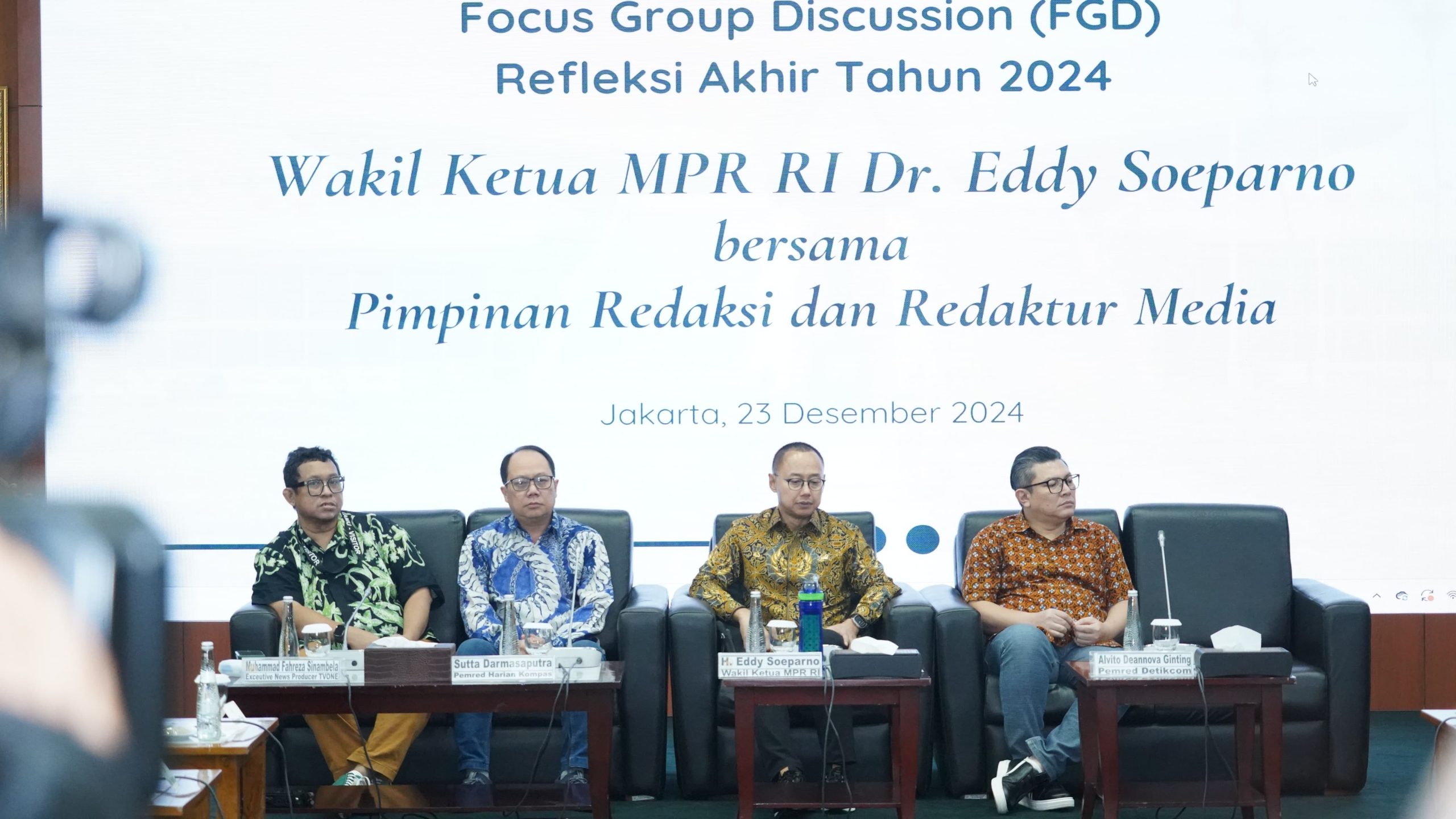 Ungkapan demikian disampaikan Wakil Ketua MPR Dr. Eddy Soeparno kepada wartawan selepas menggelar ‘Focus Group Discussion’ (FGD) ‘Refleksi Akhir Tahun 2024’ di Ruang Delegasi, Komplek Gedung MPR/DPR/DPD, Senayan, Jakarta, (23/12/2024).