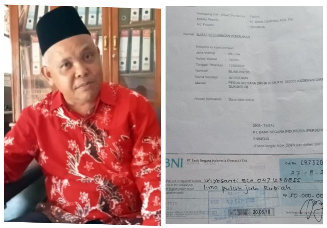 Tegal, DN-II Seorang oknum aparatur sipil negara (ASN) guru di salah satu Sekolah Menengah Pertama Negeri (SMPN) di Tegal berinisial AS diduga melakukan tindak pidana penipuan terhadap warga dengan memberikan dua cek kosong senilai Rp150 juta. (26/10/2025).