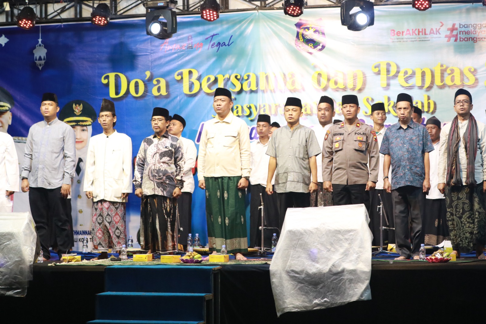 Kota Tegal, DN-II Pemerintah Kota (Pemkot) Tegal menggelar Do’a Bersama dan Pentas Seni Masyarakat dan Sekolah Mangayubagyo Pelantikan Wali Kota Tegal dan Wakil Wali Kota Tegal Masa Bakti 2025-2030. Kegiatan berlangsung di Selatan Alun-alun Kota Tegal depan videotron Balai Kota Tegal, Jl. KH Wahid Hasyim, Kelurahan Mangkukusuman, Tegal Timur, Kota Tegal, Rabu (19/2/2025) malam.
