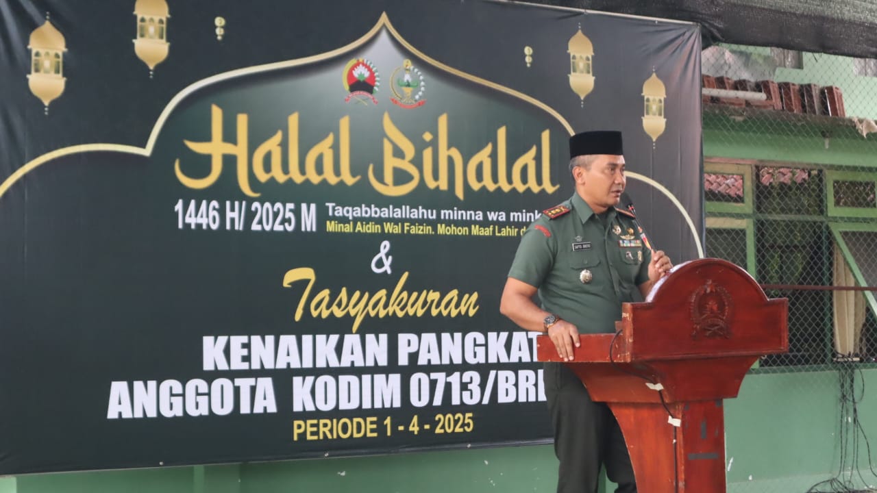 Acara Halal Bihalal diselenggarakan dalam rangka mempererat tali silaturahmi antara seluruh prajurit, PNS dan Persit Kartika Chandra Kirana Cabang XXIII Dim 0713 Brebes dan Tasyakuran personel yang naik pangkat.