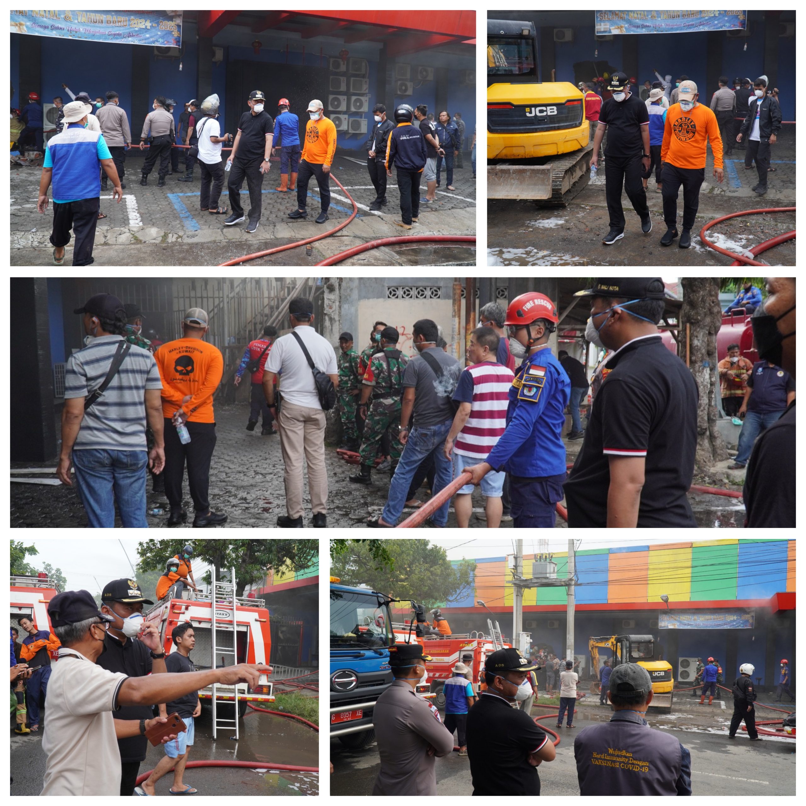 Petugas pemadam sampai Minggu sore pukul 16.00 WIB masih berusaha memadamkan api. Pemadaman terkendala oleh ruangan yang masih susah dijangkau dikarenakan banyak sekat, hingga Pemkot menurunkan satu alat berat milik DPUPR Kota Tegal untuk membobol tembok di beberapa titik.