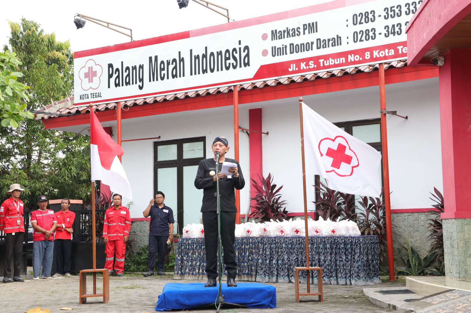 Ketua PMI Kota Tegal, Agus Dwi Sulistyantono dalam dalam laporannya menyampaikan bahwa paket sembako yang dibagikan terdiri dari 2,5 kg beras, 1 kg gula pasir, 1 pak teh, 1 bungkus kopi, 5 bungkus mie instant dan 1 botol minyak goreng.