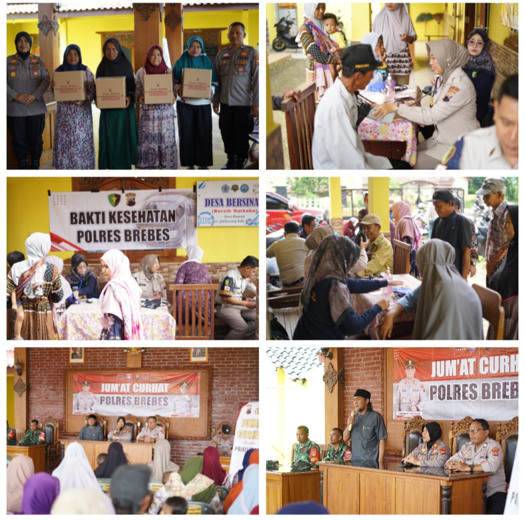 Selain mendengarkan keluhan masyarakat, dalam kegiatan tersebut juga dibagikan 50 paket sembako serta layanan pengobatan gratis dari Dokkes Polres Brebes. Layanan kesehatan ini bertujuan untuk membantu warga yang membutuhkan pemeriksaan dan pengobatan, terutama bagi mereka yang terdampak banjir dan memiliki keterbatasan dalam mengakses fasilitas kesehatan.