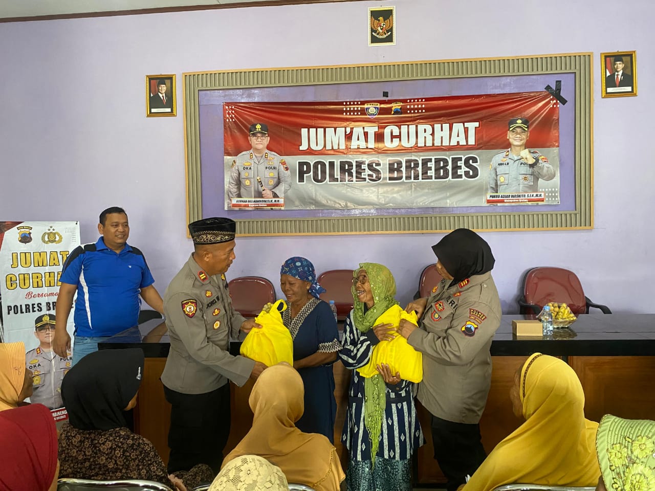 Melalui kegiatan Jumat Curhat, Polres Brebes menggelar bakti sosial dengan membagikan 50 paket sembako gratis kepada sejumlah warga kurang mampu di Desa Siasem Kecamatan Wanasari Kabupaten Brebes.