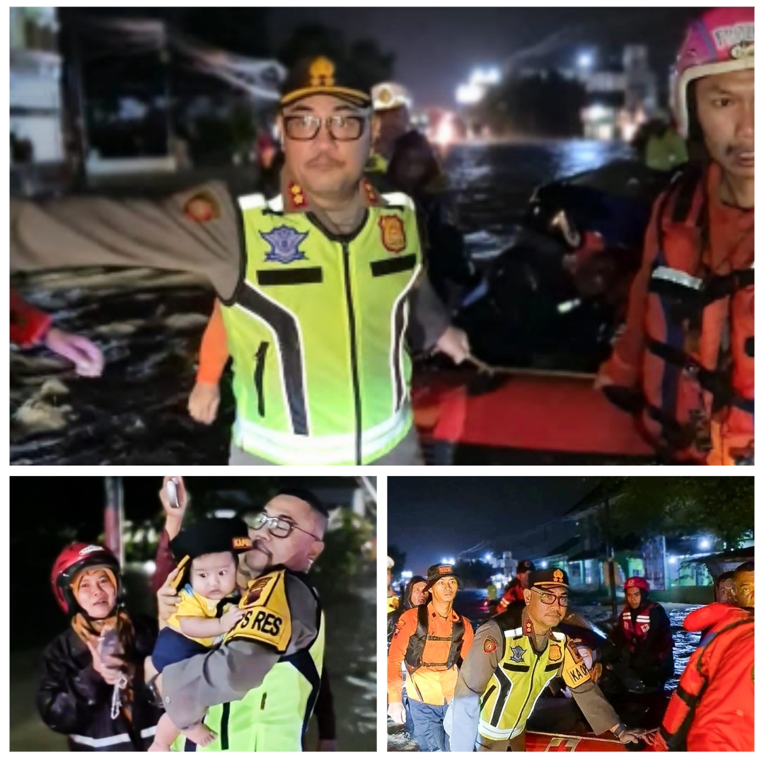 Polres Kebumen yang awalnya fokus mengamankan jalur mudik segera mengalihkan perhatian ke penanganan korban banjir hingga situasi aman. Kapolres Kebumen AKBP Eka Baasith Syamsuri bersama Pejabat Utama (PJU) Polres Kebumen turun langsung ke lokasi kejadian untuk mengevakuasi warga yang terdampak. Dalam proses evakuasi, Kapolres Kebumen tampak menggendong seorang balita yang berhasil diselamatkan dan dibawa ke tempat yang lebih aman.