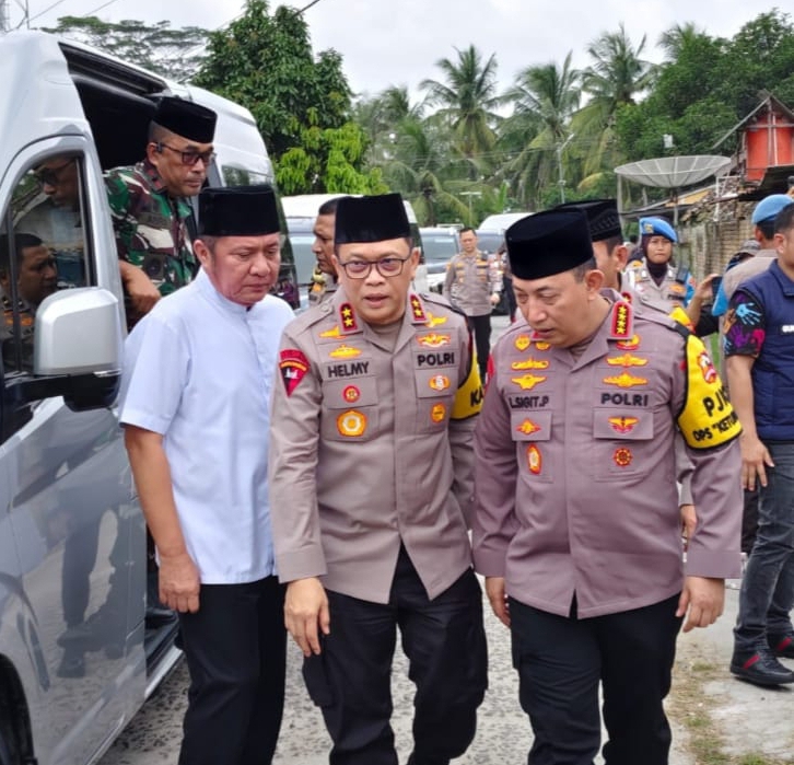 Kedatangan Kapolri di Desa Sumber Harjo, Kecamatan Buay Madang Timur, Kabupaten OKU Timur untuk menemui keluarga korban penembakan oleh oknum TNI dengan tempat kejadian arena sabung ayam di Negeri Batin Waykanan Lampung.