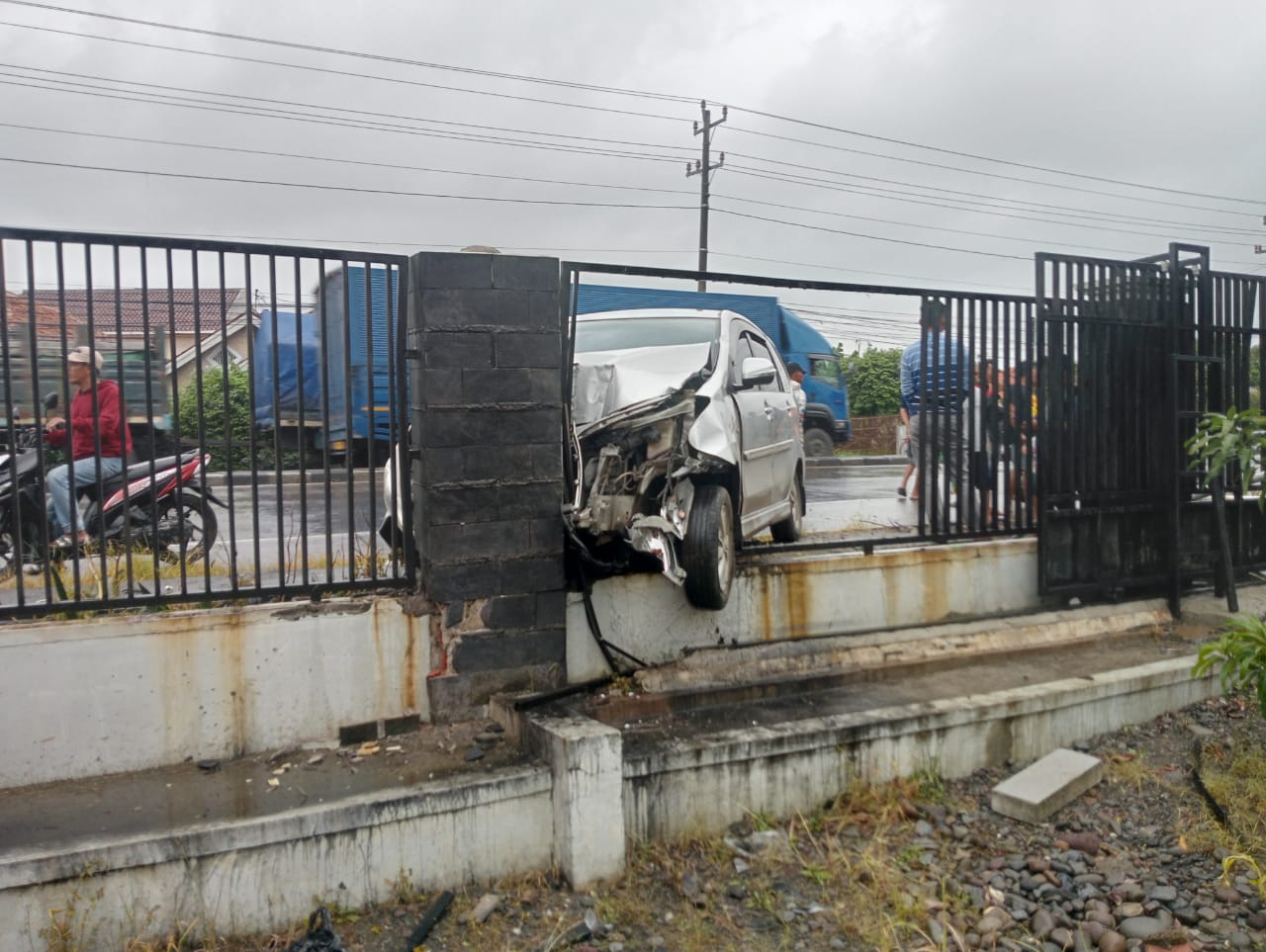 Minibus diduga melaju kencang dan kehilangan kendali hingga menabrak Reklame Notaris Hidupiko S.H, M.H, serta Pagar rumah seorang Notaris di Jalan Raya Desa Pakijangan Kecamatan Bulakamba – Brebes yang Mengalami Kerusakan akibat di Srudug Minibus.