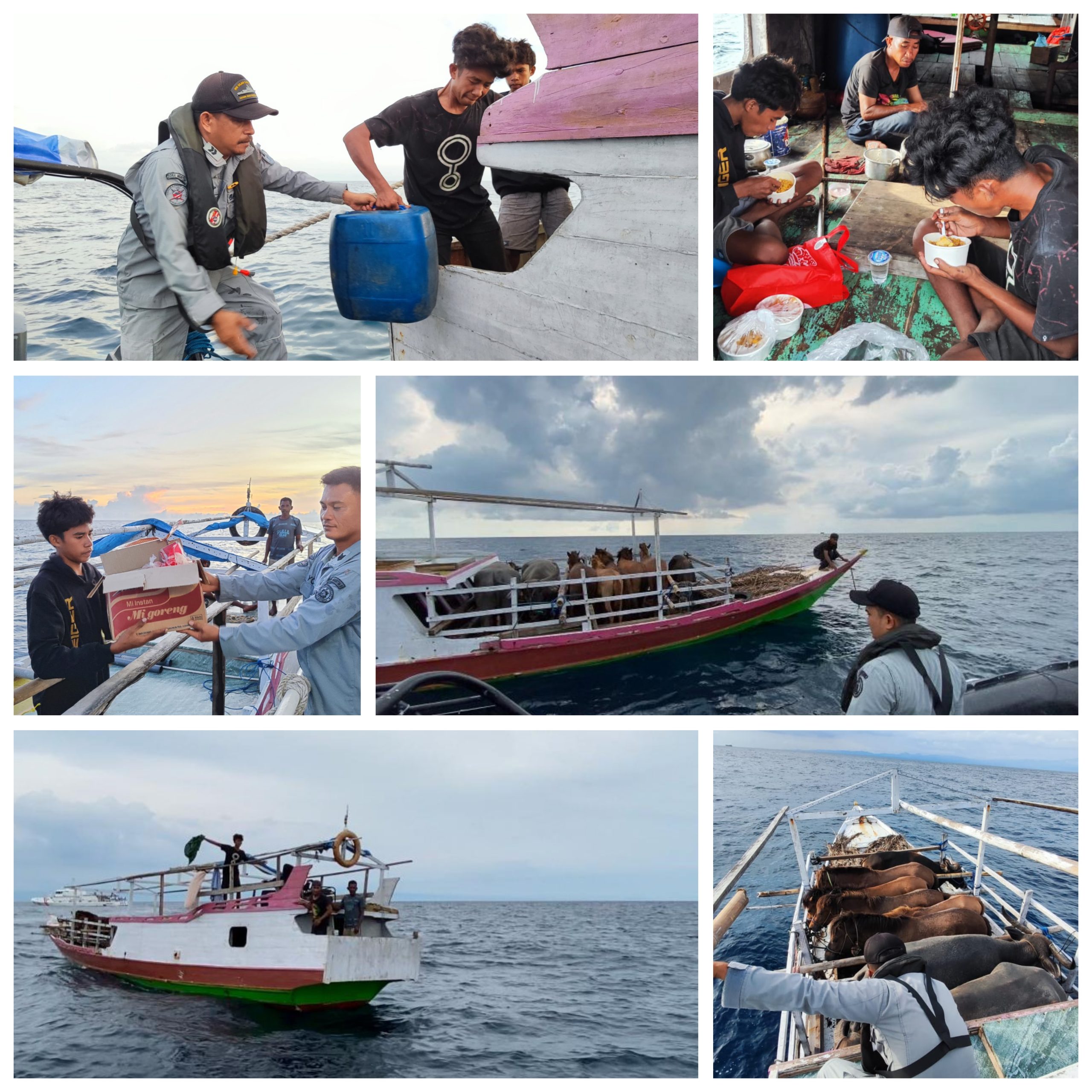 Pada pukul 16.00 WITA, tim penyelamat tiba di lokasi dan langsung melakukan pemeriksaan serta penyelamatan. Berdasarkan keterangan yang diperoleh, kapal nelayan yang dinakhodai oleh Zulkifli Lara ini mengalami kehabisan bahan bakar sejak pukul 14.00 WITA. Kapal tersebut mengangkut 4 awak kapal (termasuk nakhoda), 5 ekor kuda, 2 ekor kerbau, dan 1 ekor satu. Kapal diketahui sedang dalam perjalanan dari Flores menuju Jeneponto, Sulawesi.