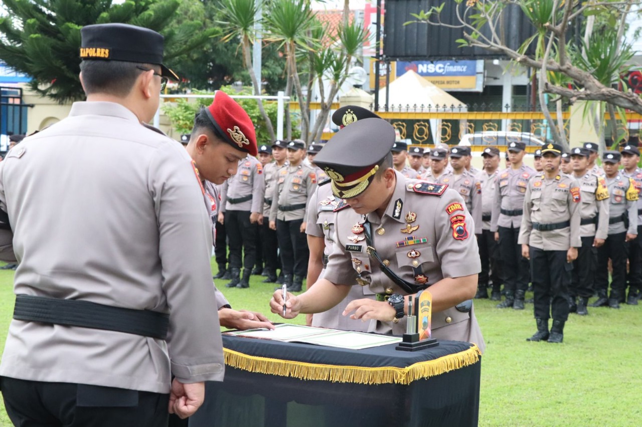 Prosesi sertijab digelar dilapangan apel Mapolres Brebes, Kamis (13/2/2025) yang dipimpin Kapolres AKBP Achmad Oka Mahendra.