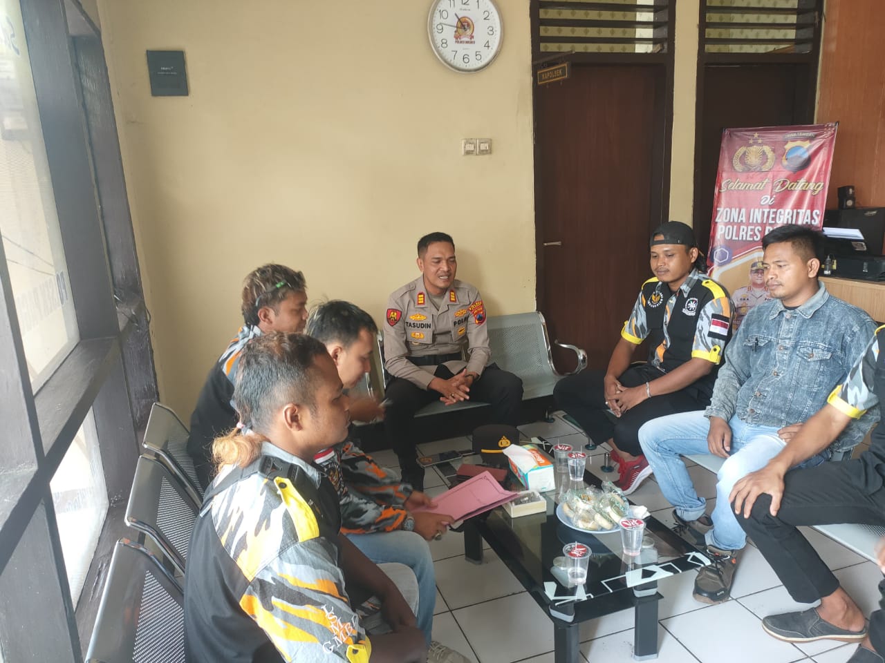 BREBES, DN-II Kapolsek Paguyangan AKP Tasudin, S.H,M.H, menerima kunjungan silahturahmi dari LSM GMBI wilayah Brebes Selatan, Pada hari Jumat, (03/01/2024).