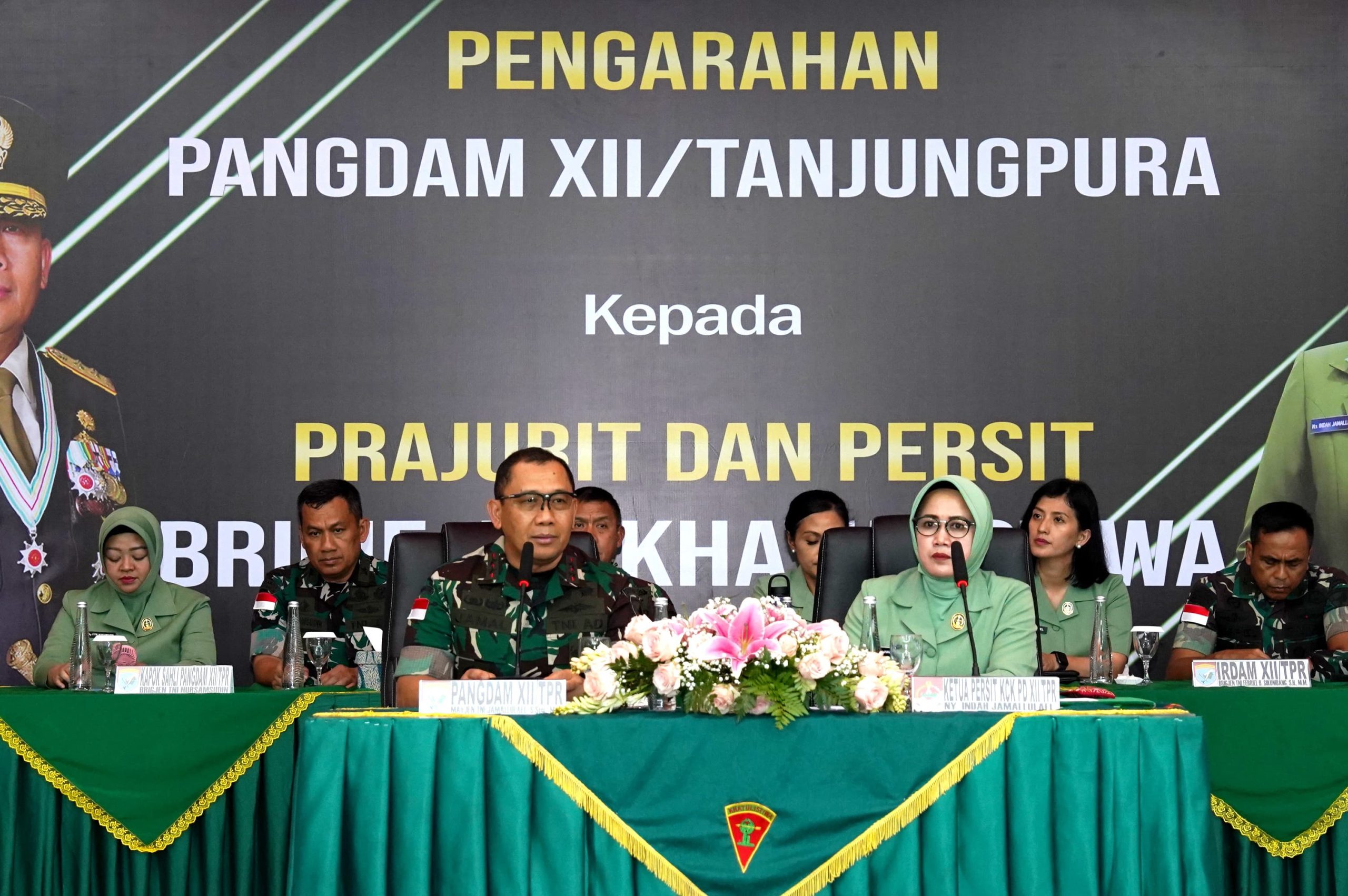Pangdam XII/Tpr Mayjen TNI Jamallulael saat memberikan pengarahan menegaskan, kepada seluruh Prajurit dan Persit untuk bersama-sama melaksanakan visi TNI yaitu Prima, singkatan dari Profesional, Responsif, Integratif, Modern dan Adaptif.