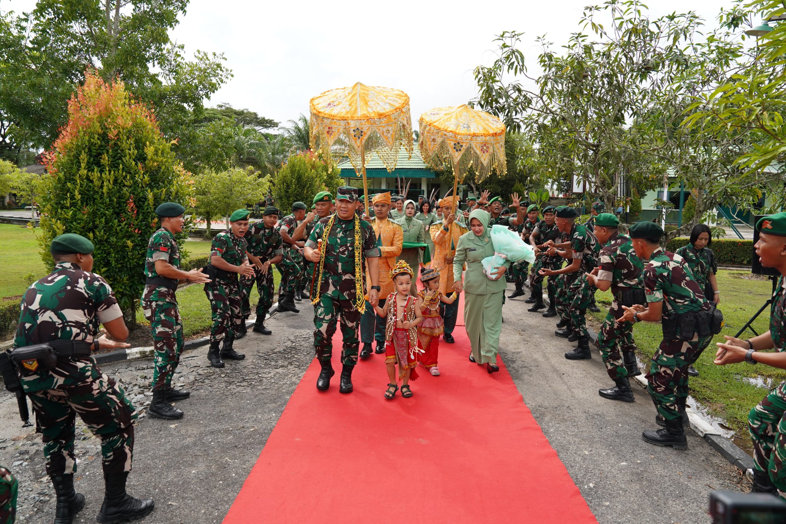 Kedatangan Pangdam beserta rombongan disambut oleh Danbrigif 19/KH, Kolonel Inf Arief Wicaksana, S.H., M.Han., dan Ketua Persit KCK Cabang LIX Brigif 19 Ny. Afni Arief Wicaksana. Selain itu, beliau juga disambut dengan tradisi tepung tawar dan potong pantan.