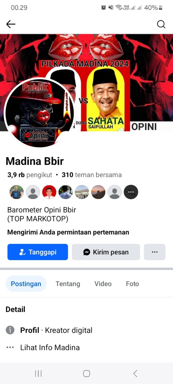Mandailing Natal (Madina), DN-II Beredarnya akun palsu melalui media sosial Facebook yang mengatasnamakan MadinaBbir yang membuat resah masyarakat Mandailing Natal (Madina) Sumatra Utara (Sumut).