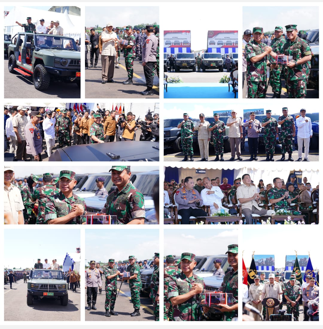 Jakarta, DN-II Panglima TNI Jenderal TNI Agus Subiyanto bersama Kapolri Jenderal Pol. Listyo Sigit Prabowo menerima penyerahan Kendaraan Khusus (Ransus) Maung MV3 buatan PT. Pindad yang dilakukan secara simbolis oleh Menteri Pertahanan (Menhan) RI Sjafrie Sjamsoeddin, bertempat di Appron Lanud Husein Sastranegara, Bandung, Jawa Barat, Sabtu (01/03/25).