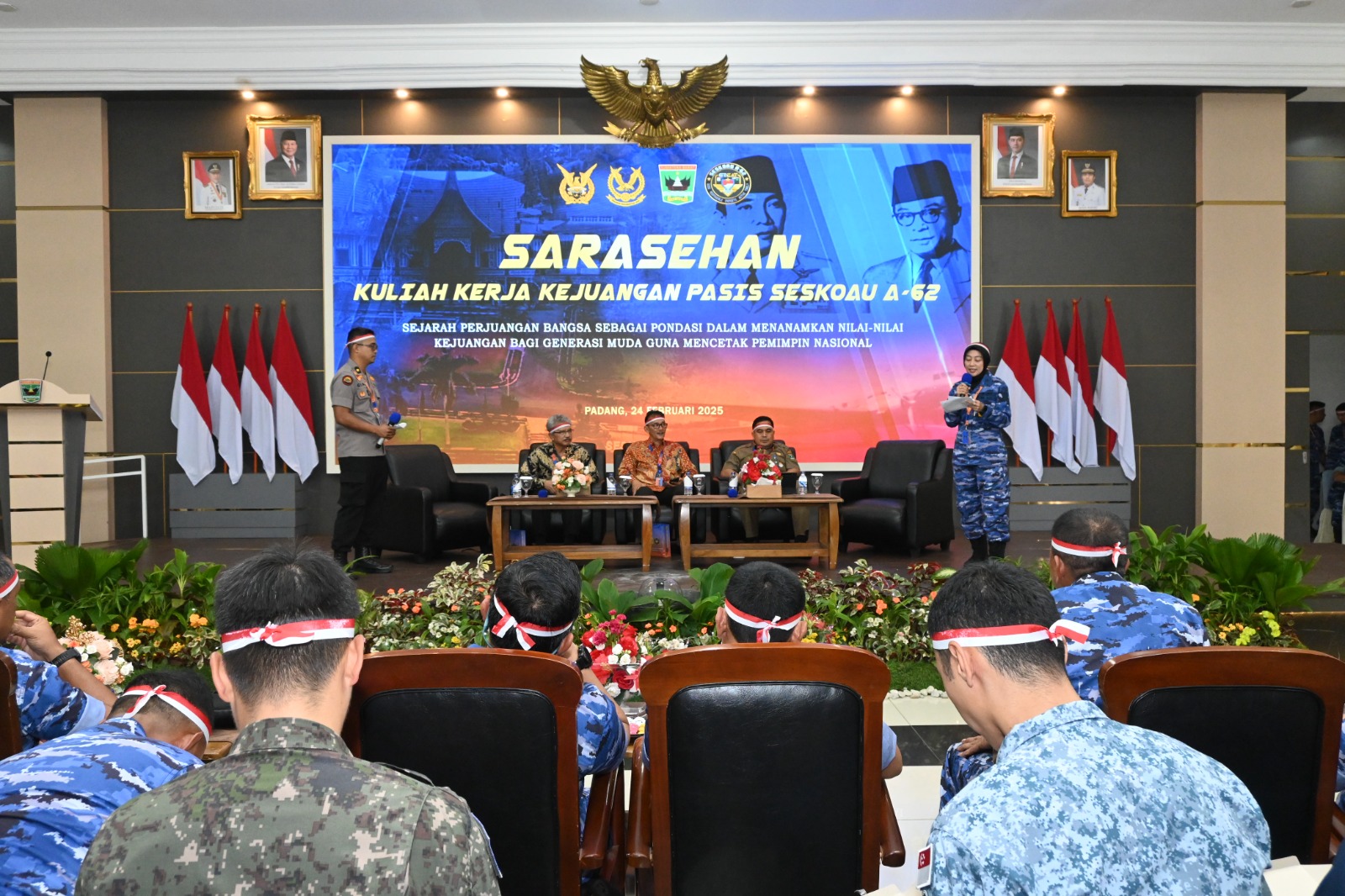 PADANG, DN–II Dalam upaya menanamkan nilai-nilai kejuangan dan kepemimpinan bagi generasi muda, Perwira Siswa (Pasis) Sekolah Staf dan Komando Angkatan Udara (Seskoau) Angkatan ke-62 Tahun Pelajaran 2025 menggelar Saresehan Kepemimpinan dan Kejuangan di Auditorium Gubernuran Sumatera Barat, Senin (24/2/2025).