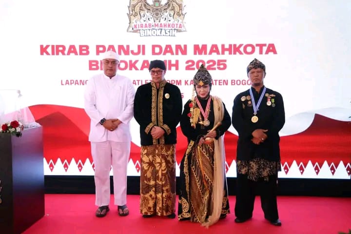Kirab Panji dan Mahkota Binokasih dilaksanakan dari SMK Negeri 1 Cibinong menuju Auditorium Sekretariat Daerah, Cibinong, Senin (21/4/2025).