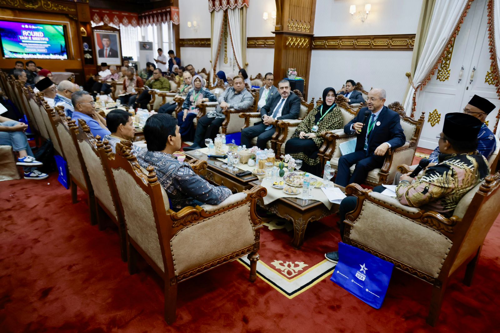 BANDA ACEH, DN-II Pj Gubernur Aceh, Dr. H. Safrizal ZA, M.Si bersama sejumlah tokoh internasional dan nasional membahas skema dan upaya memajukan pembangunan Aceh pasca 20 tahun bencana Tsunami dalam pertemuan Aceh Internasional Forum, di Pendopo Gubernur Aceh, Senin, (23/12/2024).