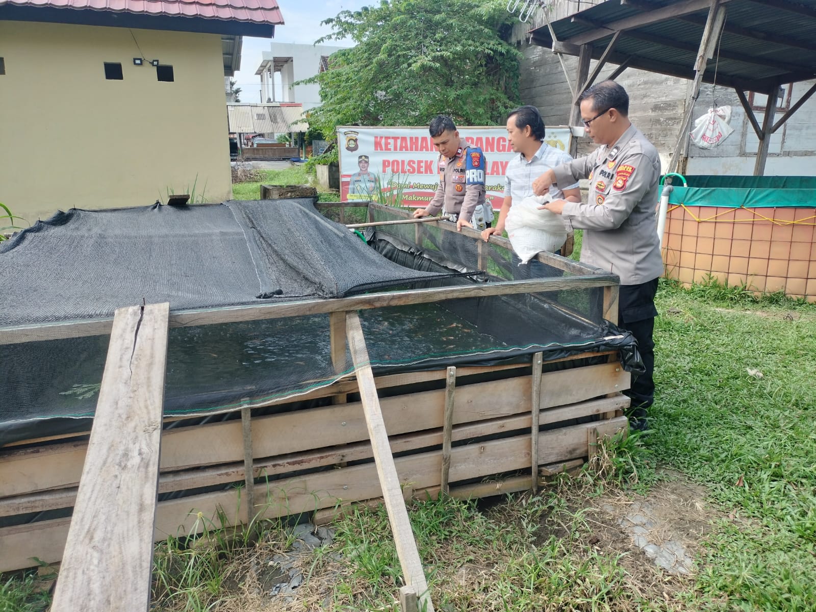Indralaya, DN-II Dalam rangka mendukung program Ketahanan Pangan, Polsek Indralaya terus melakukan pemeliharaan dan monitoring perkembangan ternak ikan di pekarangan Mapolsek. Kegiatan ini dilakukan secara rutin oleh personel Polsek Indralaya guna memastikan pertumbuhan ikan yang optimal serta menjaga kualitas air kolam. (203/2025).