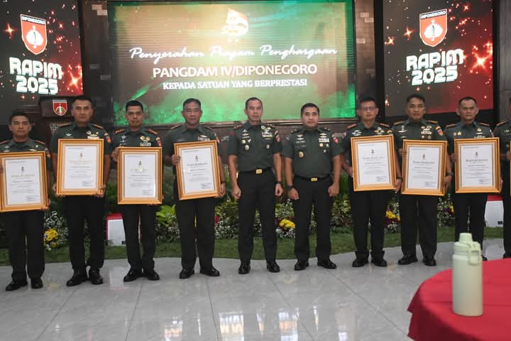Penghargaan diserahkan langsung oleh Pangdam IV/Diponegoro Mayjen TNI Deddy Suryadi, S.I.P., M.Si. saat membuka Rapat Pimpinan Kodam IV/Diponegoro di Balai Diponegoro Jl. Perintis Kemerdekaan No.20, Pudakpayung, Kecamatan Banyumanik, Kota Semarang. Selasa (25/2/2025).