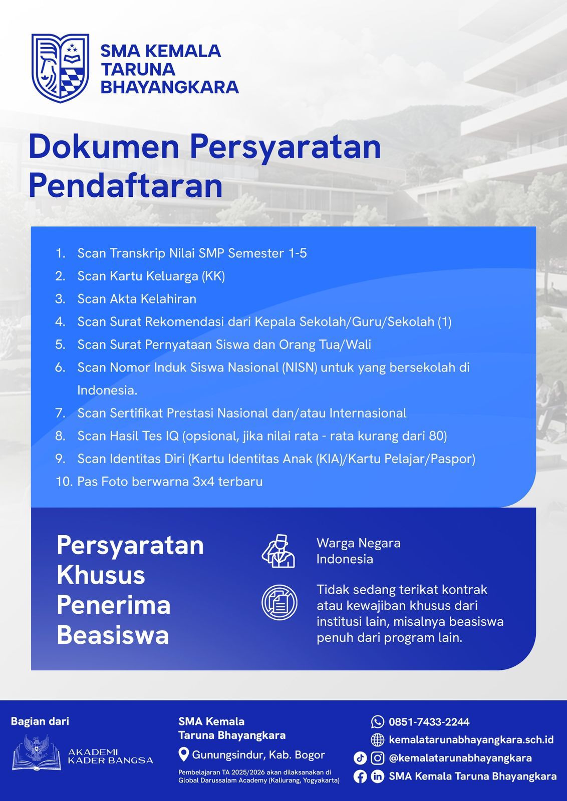 JAKARTA, DN-II tepat pukul 10.00 WIB, telah dibuka secara resmi Penerimaan Peserta Didik Baru (PPDB) SMA Kemala Taruna Bhayangkara, yang diperuntukkan bagi para siswa-siswi SMP berprestasi yang diprioritaskan bagi siswa kurang beruntung secara ekonomi, dari seluruh nusantara, untuk melanjutkan pendidikan ke sekolah berkualitas secara gratis. Pada Jumat, (27/12/2024).