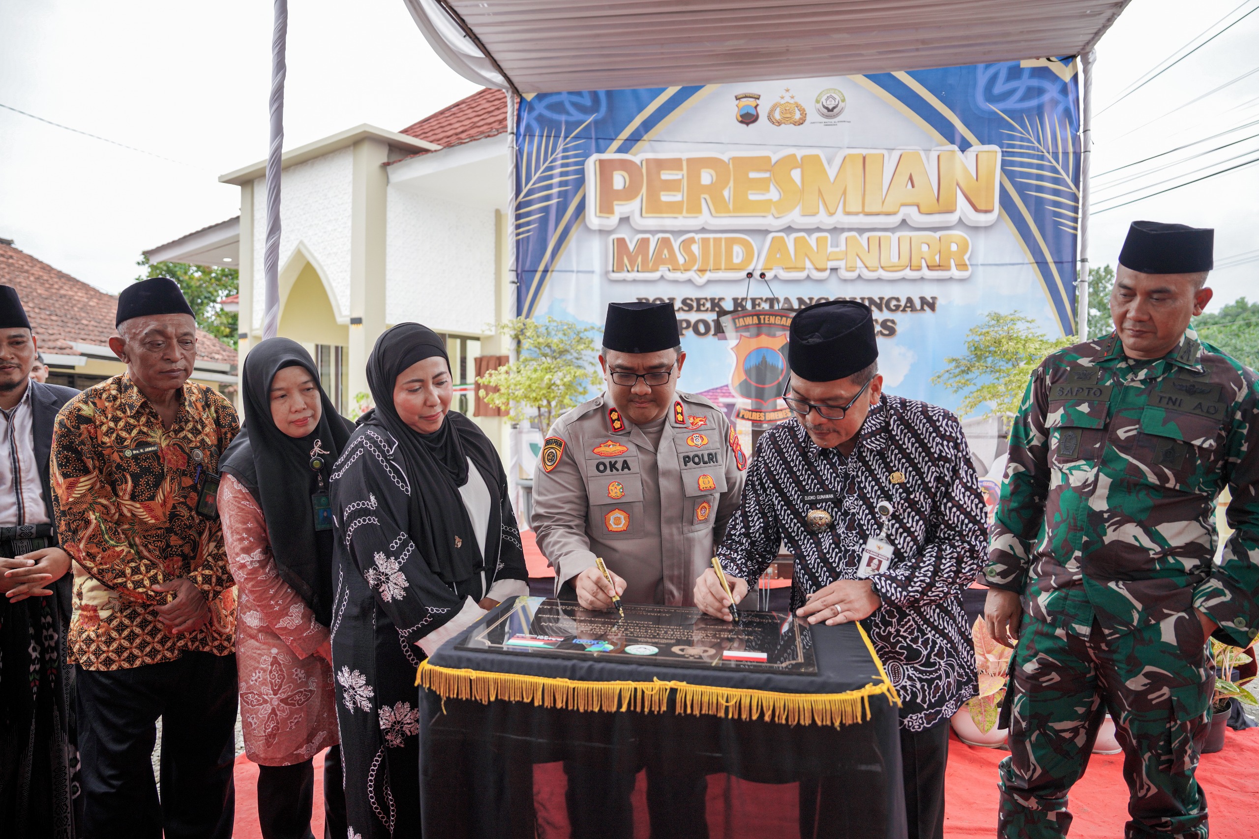 Brebes, DN-II Kapolres Brebes AKBP Achmad Oka Mahendra bersama Pj Bupati Brebes Ir Djoko Gunawan meresmikan masjid An Nurr yang berlokasi di mako Polsek Ketanggungan, Kamis (30/1/2025).