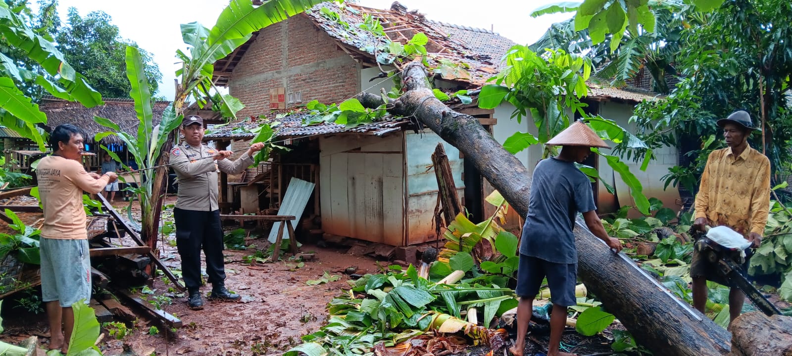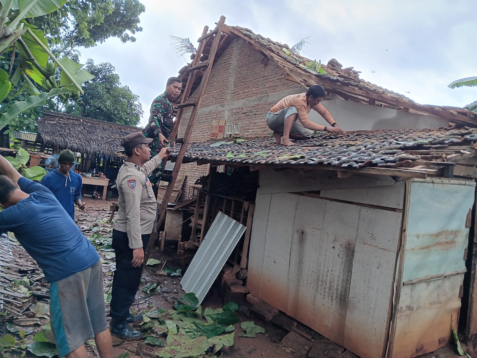 Petugas gabungan tersebut membantu evakuasi dan pembersihan puing-pung yang masih nampak berserakan. Mulai dari memangkas batang pohon yang tumbang hingga pembersihan genteng dan atap rumah warga yang rusak.