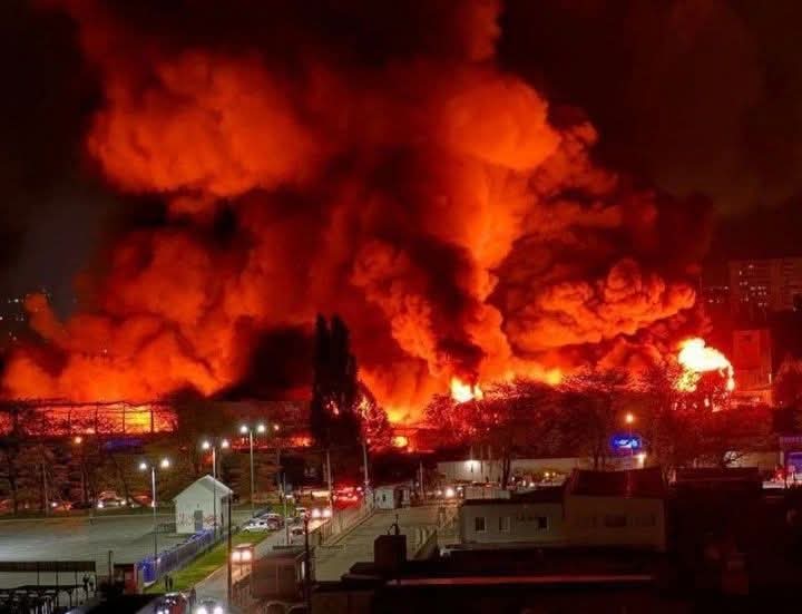 Rusia melancarkan serangan rudal balistik ke Odesa, Ukraina, Rabu, 1 Mei 2024. Serangan ini mengakibatkan gudang perusahaan logistik terbesar di Ukraina, Nova Poshta mengalami kebakaran hebat. (Twitter/X @runews)