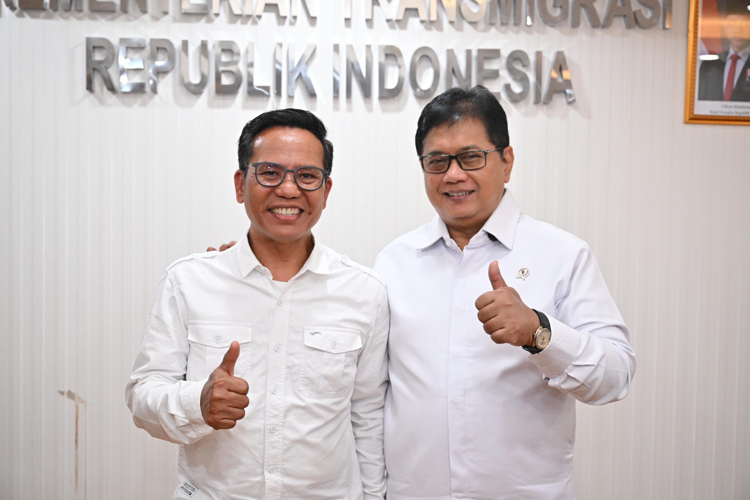Wakil Menteri Transmigrasi Viva Yoga Mauladi menerima kehadiran Wakil Rektor I Universitas Muhammadiyah Jakarta (UMJ) Dr. Muhammad Hadi, SKM., Mkes; Dekan FISIP Prof. Dr. Evi Satispi, MSi; dan Ketua Program Studi Magister Ilmu Komunikasi Dr. Tria Patrianti, MIkom.